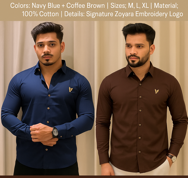 | Colors | White and Blue shirt combo pack |